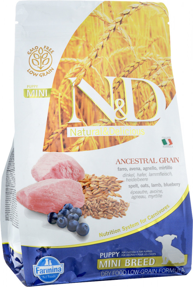Farmina Pet Foods Корм низкозерновой корм для щенков мелких пород с ягненком и черникой+455