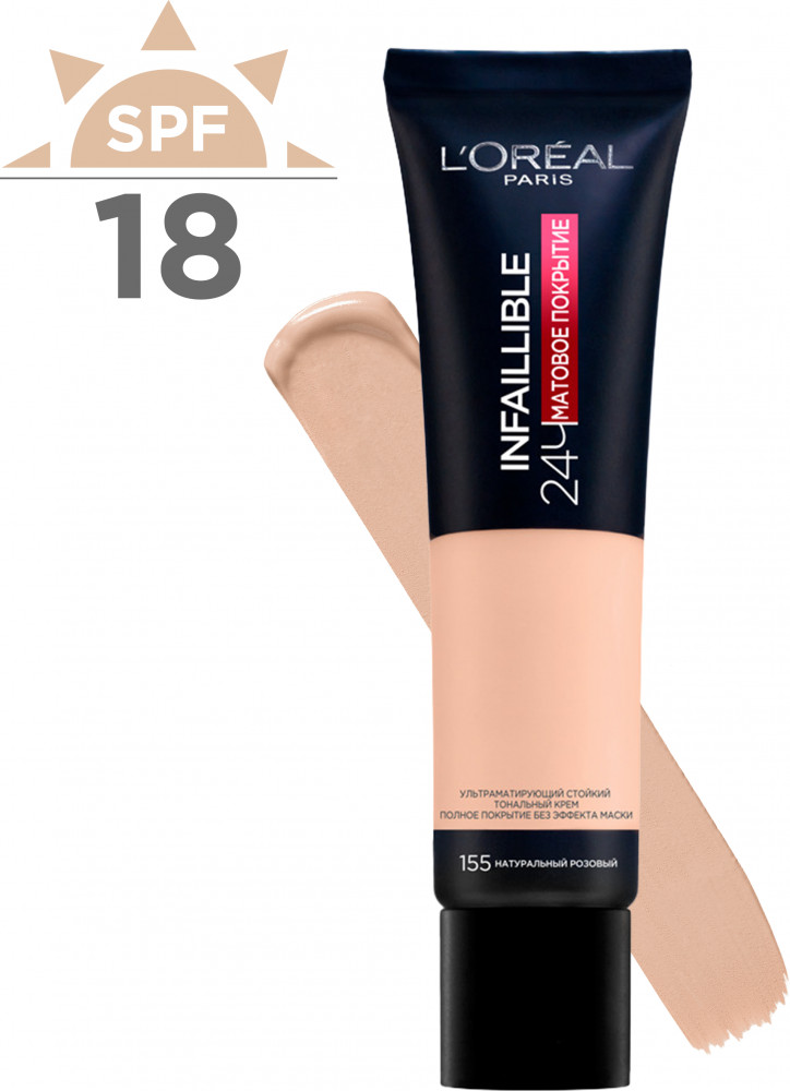 L'Oreal Paris Ультраматирующий стойкий тональный крем «Infaillible 24ч матовое покрытие», оттенок 155