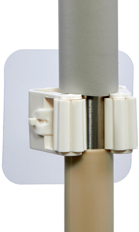 Отлично закрепила швабру в шкафу, крепиться крепко. Можно вставлять швабру, а можно не вынимать из крепления и просто снимать с крючка, швабра york вошла.