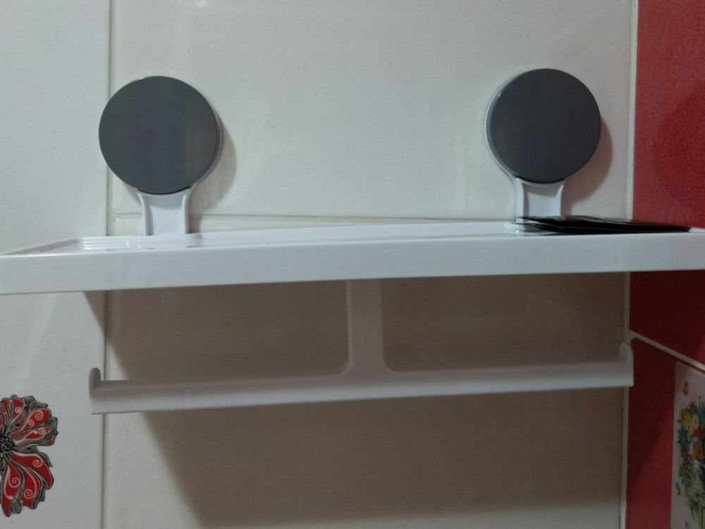 Дополню отзыв, липучка таки не выдержала, полка успешно свалилась на пол, ну хоть не сломалась, полка не выдержала саму себя, на второй день отклеилась, думаем прикрутить её.