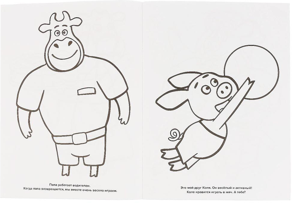 Малыш будет рад повстречаться на страницах раскраски с героями любимого мультфильма «Оранжевая корова». В ней вы найдёте красивые картинки с чёткими контурами и описания к ним. Раскраску удобно брать с собой в дорогу.