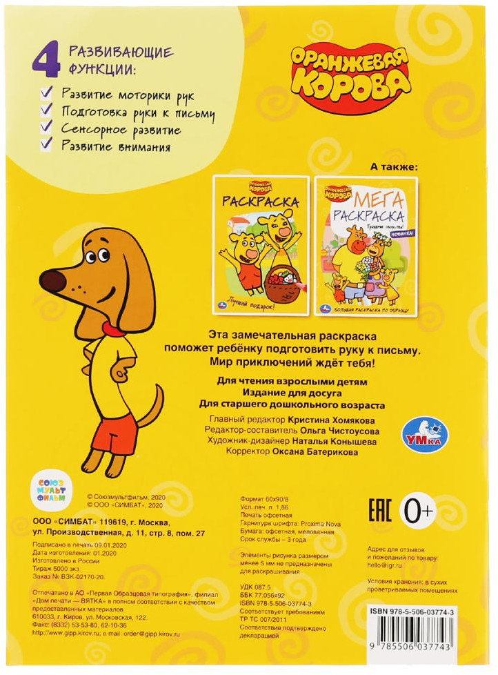 Раскраска «Весёлая семейка. Оранжевая корова» ТМ «УМка» для юных художников.