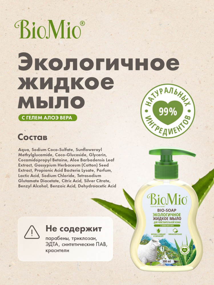 BioMio Мыло жидкое для рук с гелем алое-вера