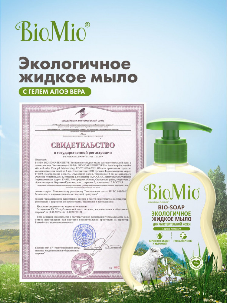 Новинка в линейке Bio Mio. Руки не сушит. Буду еще приобретать после использования. И самое главное- хороший аромат
