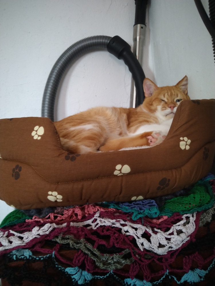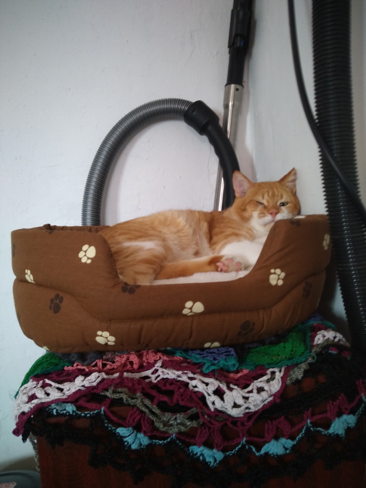 Кот большой облюбовал хотя покупала для маленького котика, который не оценил лежак.