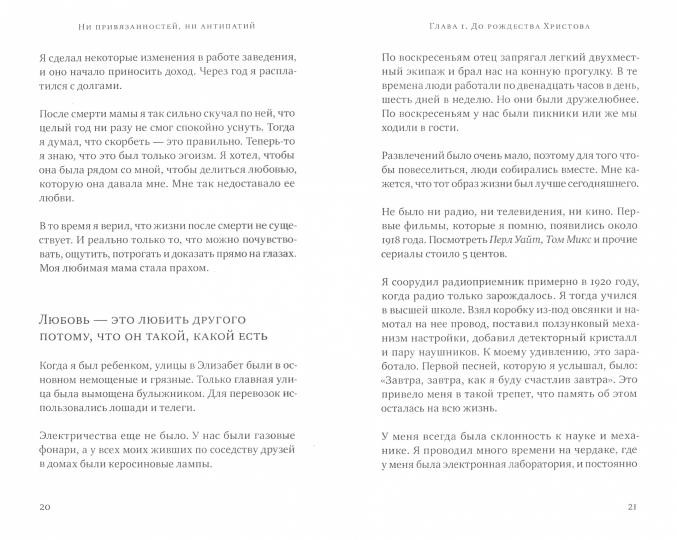 Ни привязанностей, ни антипатий. Автобиография МастераВ данный момент этот товар отсутствует в продаже. Возможно, у нас найдется аналогичный или похожий товар здесь. В 1952 году он перенес смертельный сердечный приступ, объявленный врачами неизлечимым, и был отправлен домой умирать. Столкнувшись с сильным страхом смерти, он тщательно изучил причины того, что с ним произошло, и обнаружил, что к этому плачевному состоянию его привело накопление прошлых негативных мыслей и чувств, а не окружающий мир или другие люди, как он раньше думал. Ему раскрылось то, что он был по-настоящему счастлив, когда любил сам, а не когда любили его. Он понял, что может изменить свое отношение к прошлым событиям и людям, превратив негативность, застрявшую в его подсознании, в любовь. Используя процесс отпускания негативных эмоций, он за три месяца пришел к состоянию наполненности любовью, радостью и свободой. Произошло распознание его истинной природы, с ним случилось просветление. При этом его тело исцелилось, как будто само по себе. |