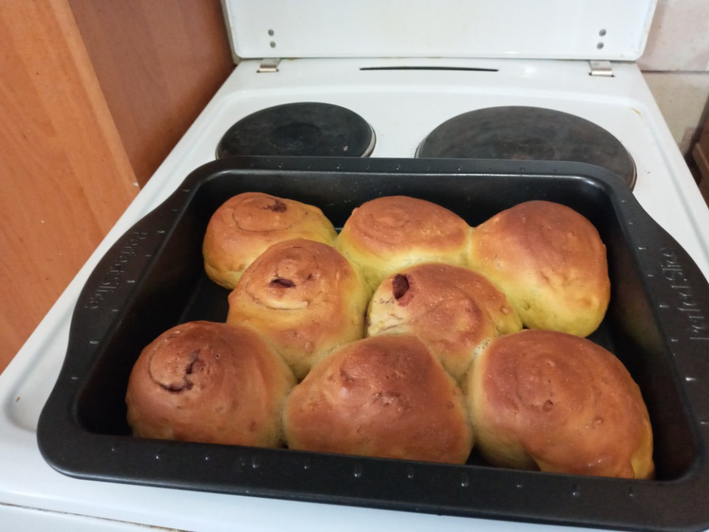 В смесь добавила 2 ст ложки сахара и 2 ст ложки масла и из готового теста решила сделать булочки с корицей. вкусные булочки получились. Домашним понравились. Одной упаковки хватило на 8 булочек. Выпекала при 200 С 30 мин