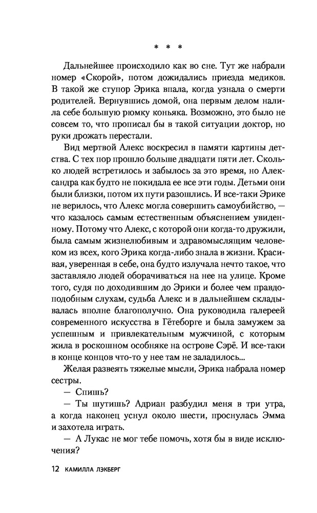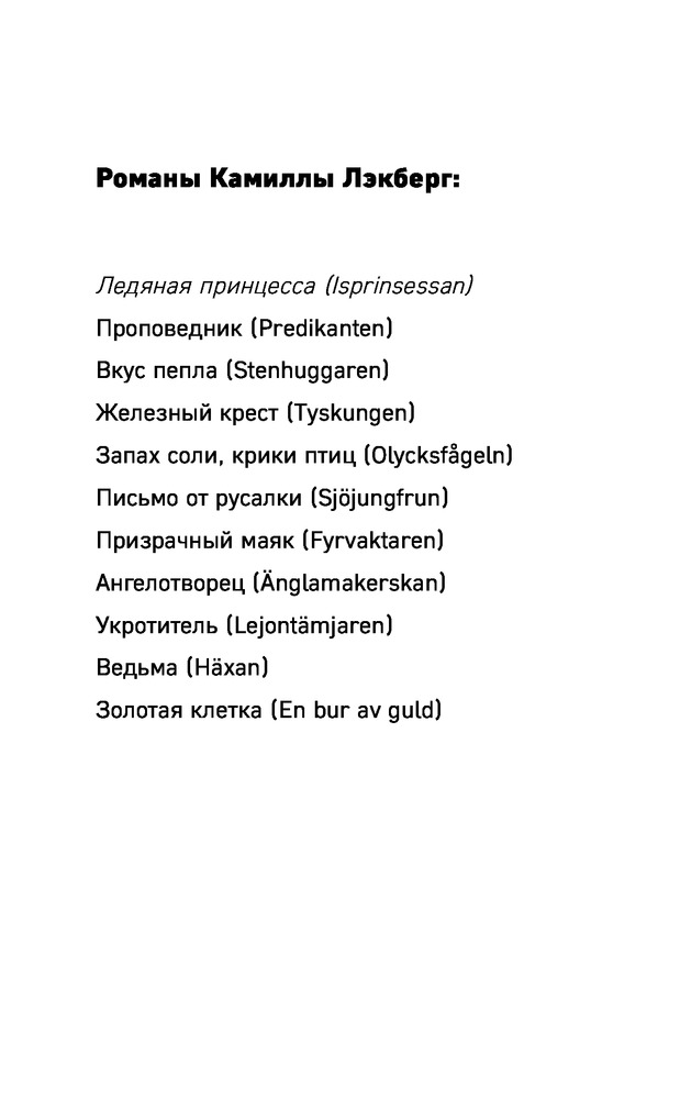 Ледяная принцессаВ данный момент этот товар отсутствует в продаже. Возможно, у нас найдется аналогичный или похожий товар здесь. Серия: Крафтовый детектив из Скандинавии. Только звезды Ее называют «шведской Агатой Кристи». Камилла Лэкберг — ведущий автор среди прославленных мастеров скандинавского детектива. Первый же ее роман стал мировым бестселлером — как, впрочем, и каждый последующий. Лэкберг входит в десятку самых популярных писателей Европы. Ее книги переведены более чем на 30 языков и проданы тиражом более 20 млн. экземпляров.  |