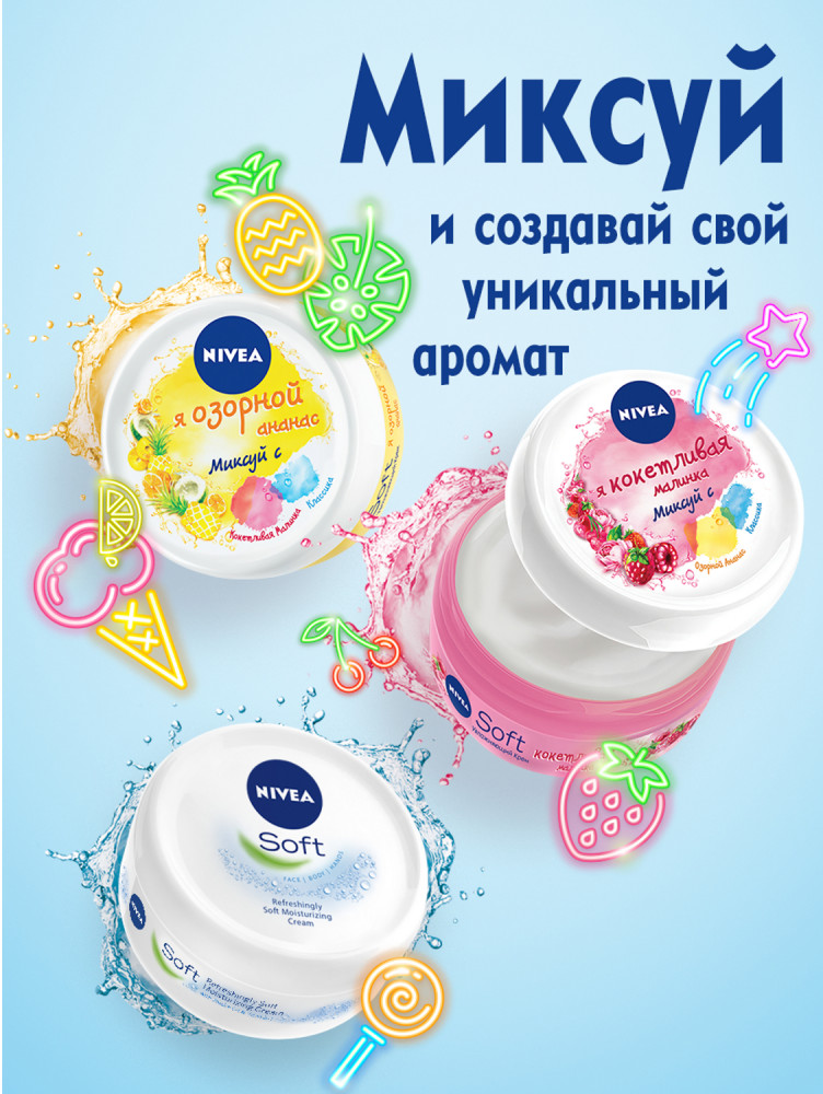 NIVEA Крем увлажняющий «Soft. Я кокетливая малинка»В данный момент этот товар отсутствует в продаже. Возможно, у нас найдется аналогичный или похожий товар здесь. В чарующем ягодном аромате крема «Я кокетливая малинка», помимо малины, можно услышать ноты земляники и цветков вишни. Он был разработан парижскими парфюмерами специально для молодых девушек! Но самое интересное — его можно миксовать с классическим кремом Soft в разных пропорциях и каждый раз получать новый уникальный аромат! Подходит для нанесения на кожу лица, рук и тела. Масло Жожоба и Витамин Е наполняют кожу влагой. Благодаря легкой структуре, крем быстро впитывается. Оцените результат: Ваша кожа необычайно нежная и ухоженная! |