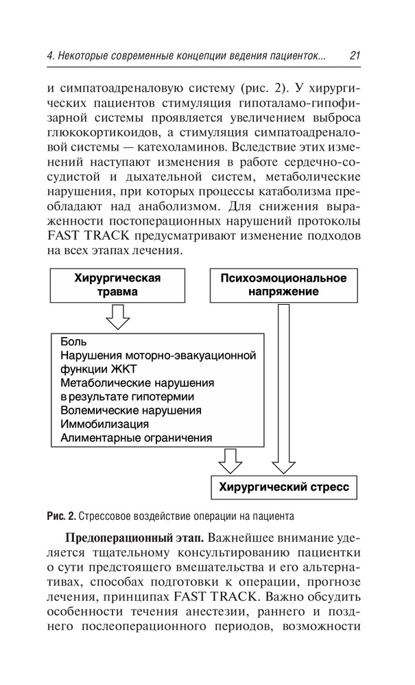 В книге изложены принципы предоперационной подготовки и послеоперационного ведения женщин в гинекологической клинике (при операциях, выполняемых путем чревосечения, лапароскопии или влагалищным доступом), современные взгляды на ведение периоперационного периода, в том числе рассмотрены концепции однодневного хирургического лечения, FAST TRACK, ERAS (Enhanced Recovery After Surgery), вопросы рациональной антибиотикопрофилактики, профилактики тромбоэмболических осложнений, послеоперационного обезболивания. Издание окажется полезным для специалистов, работающих в стационаре, а также для врачей акушеров-гинекологов амбулаторного звена в их взаимодействии со стационарами при подготовке пациенток к хирургическому лечению, а также для врачей общей практики. |