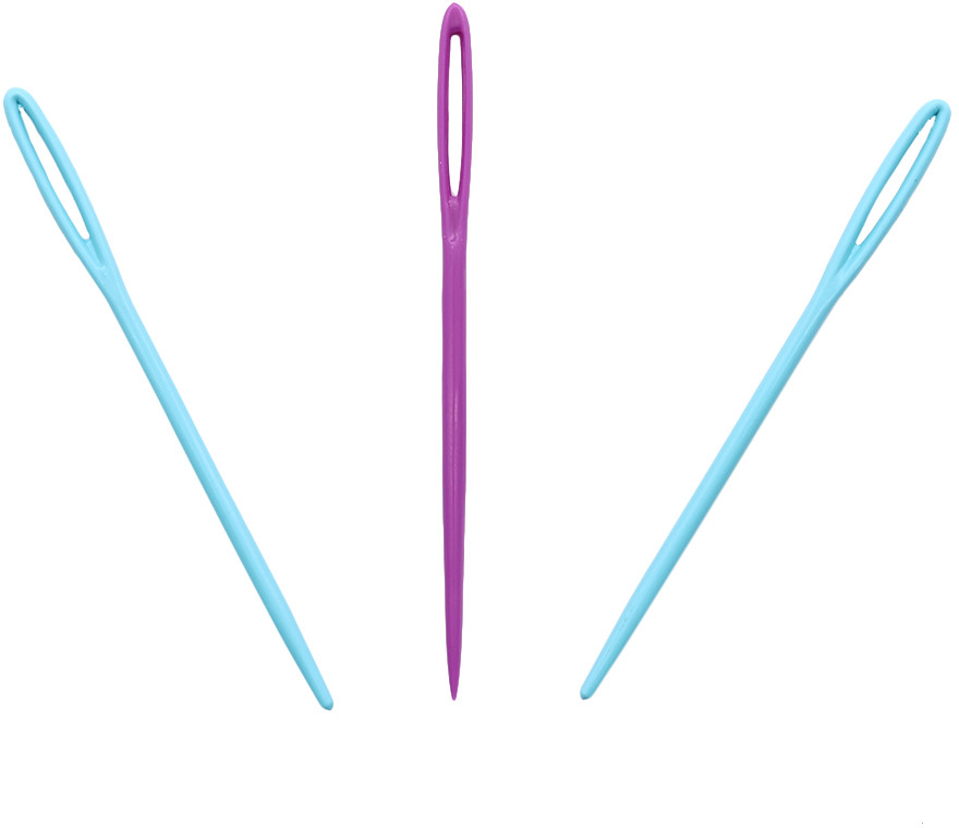 Иглы из цветного пластика предназначены для сшивания деталей вязаных изделий. Пригодятся при изготовлении свитеров, кардиганов, топов. Подходят также для гобеленов. В наборе 2 иглы с закругленным концом и 1 игла с острым концом. Благодаря большому ушку сшивать детали можно пряжей и толстыми нитками для вязания. |