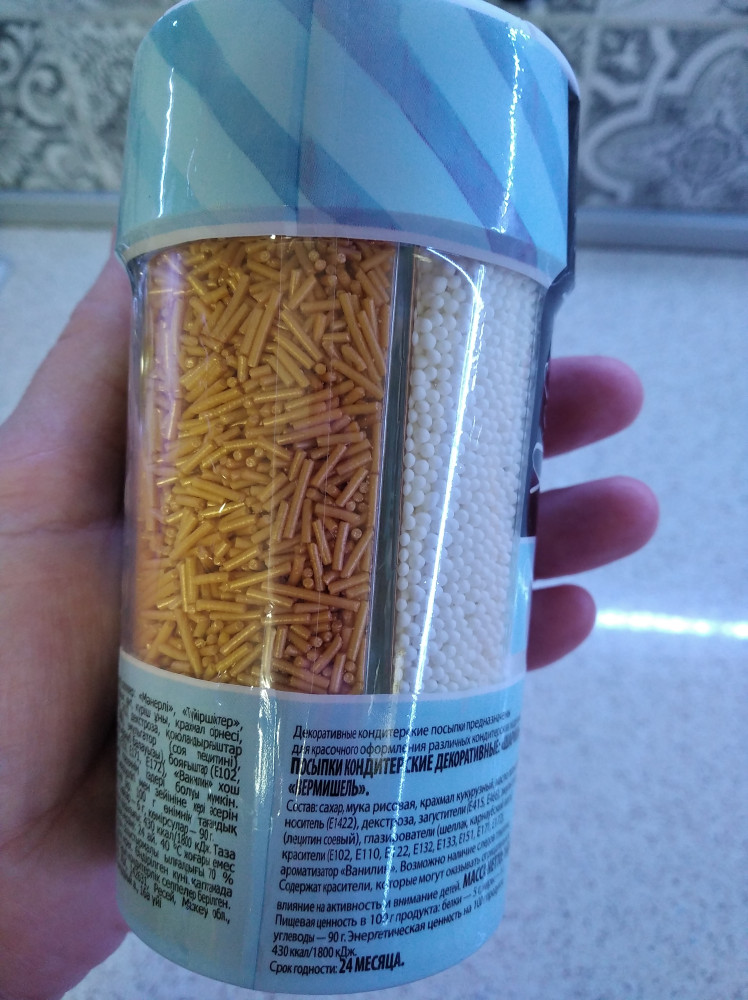 Посыпки и баночки превзошли мои ожидания. Удобная баночка, посыпки разные. Все говорили какая красота. Всем советую.