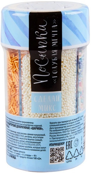 Парфэ Посыпки кондитерские «Голубая мечта»В данный момент этот товар отсутствует в продаже. Возможно, у нас найдется аналогичный или похожий товар здесь. Декоративные кондитерские посыпки предназначены для красочного оформления различных кондитерских изделий. Посыпки в секциях удобны в применении, разделение по ячейкам позволяет использовать каждый вид по-отдельности, а также есть уникальная возможность миксовать посыпки по своему вкусу, получая оригинальное быстрое украшение любимого изделия. |