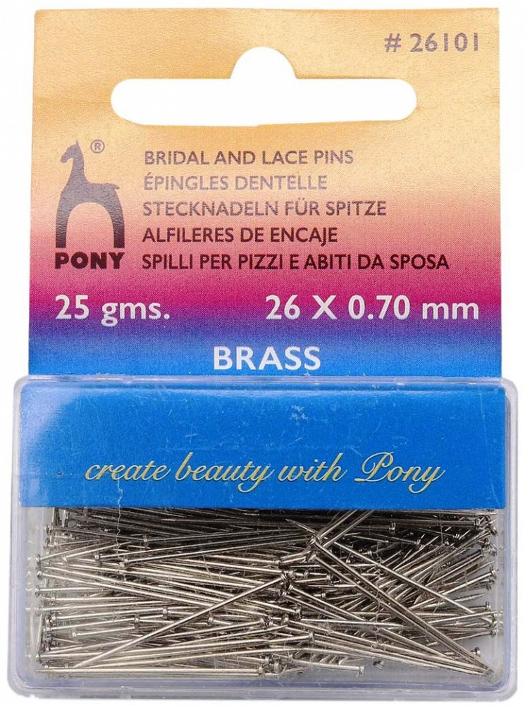 Булавки-гвоздики «Pony» изготовлены из латуни. Такие булавки отлично подойдут для выполнения потайного шва вручную, при пошиве и примерке одежды, часто используются при раскрое ткани, а также для стачивания деталей кроя на швейной машинке. Такие булавки станут полезным приобретением для любой рукодельницы. |