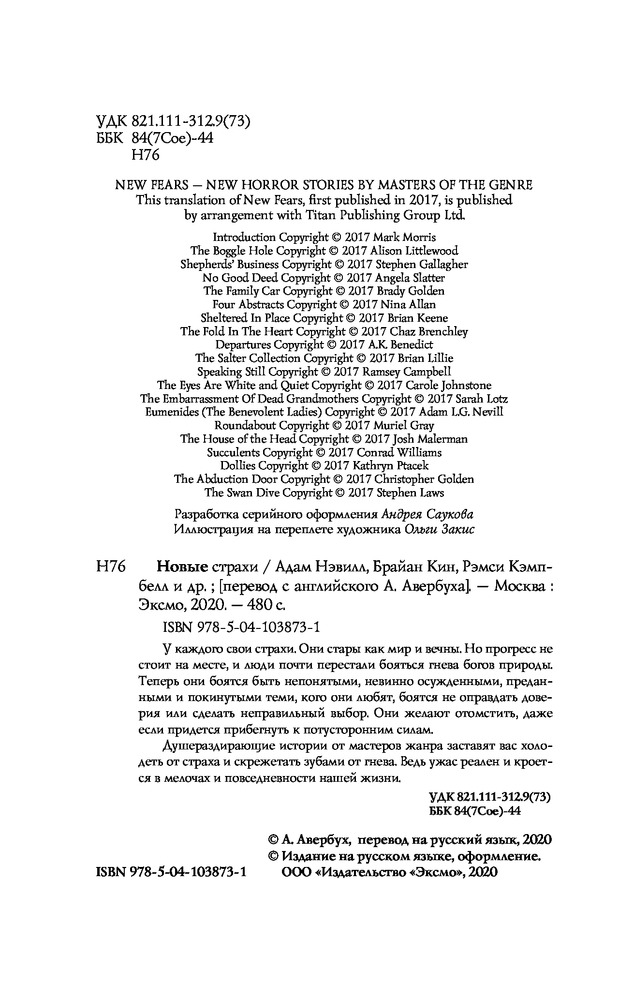 Душераздирающие истории от мастеров жанра заставят вас холодеть от страха и скрежетать зубами от гнева. Ведь ужас реален и кроется в мелочах и повседневности нашей жизни. |