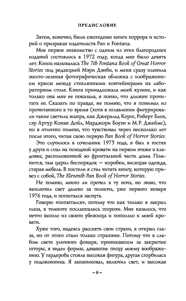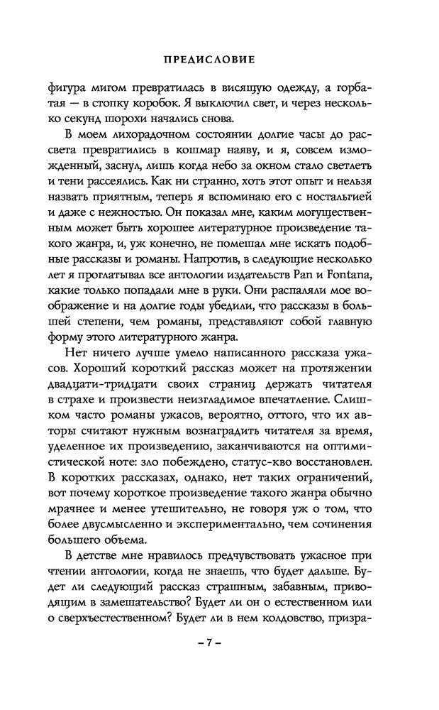 ¼ книги прочитана, надо сказать на одном дыхании, но... восхищения особого не вызывает, один рассказ и вовсе показался глуповатым, хотя передавал атмосферу, чем, кстати, могут похвастаться все из 5 прочитанных рассказов. Особой жути не вызывает, да даже и не особой тоже, всё чаще удивление и недоумение. Буду надеяться, что это пока только начало и самые интересные рассказы впереди.