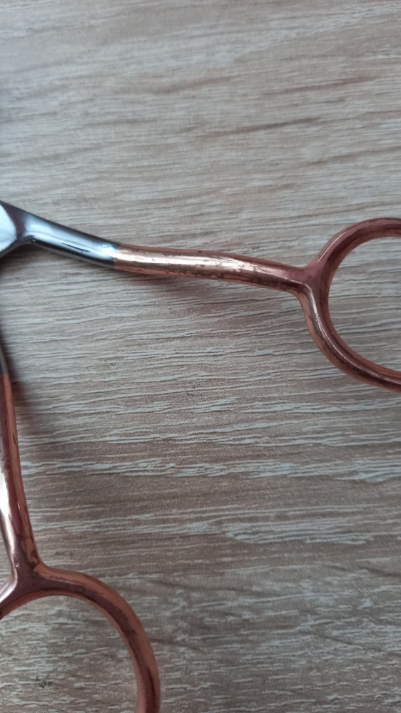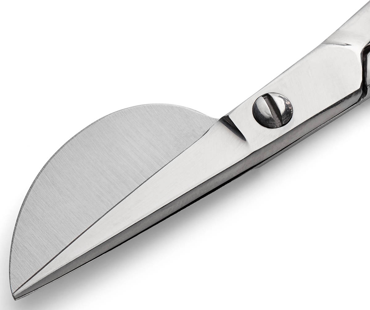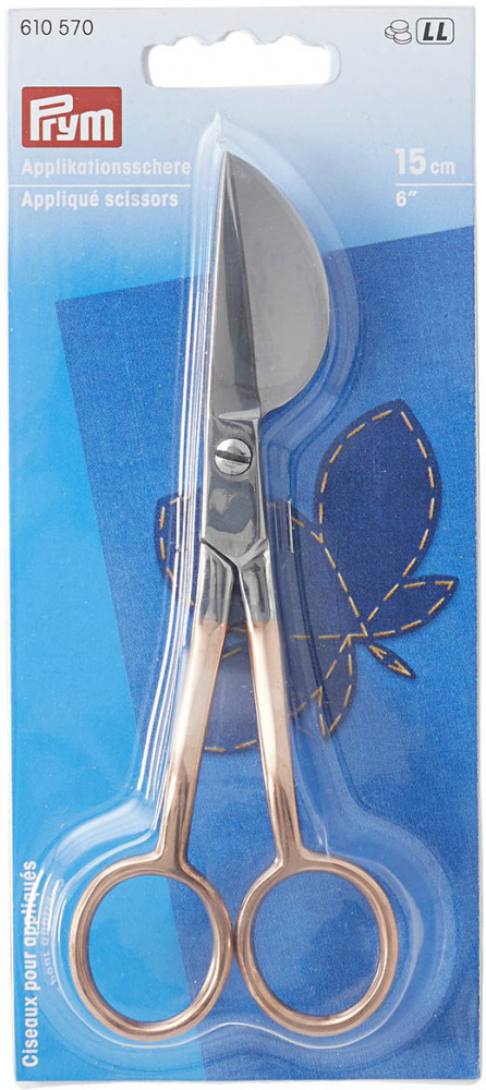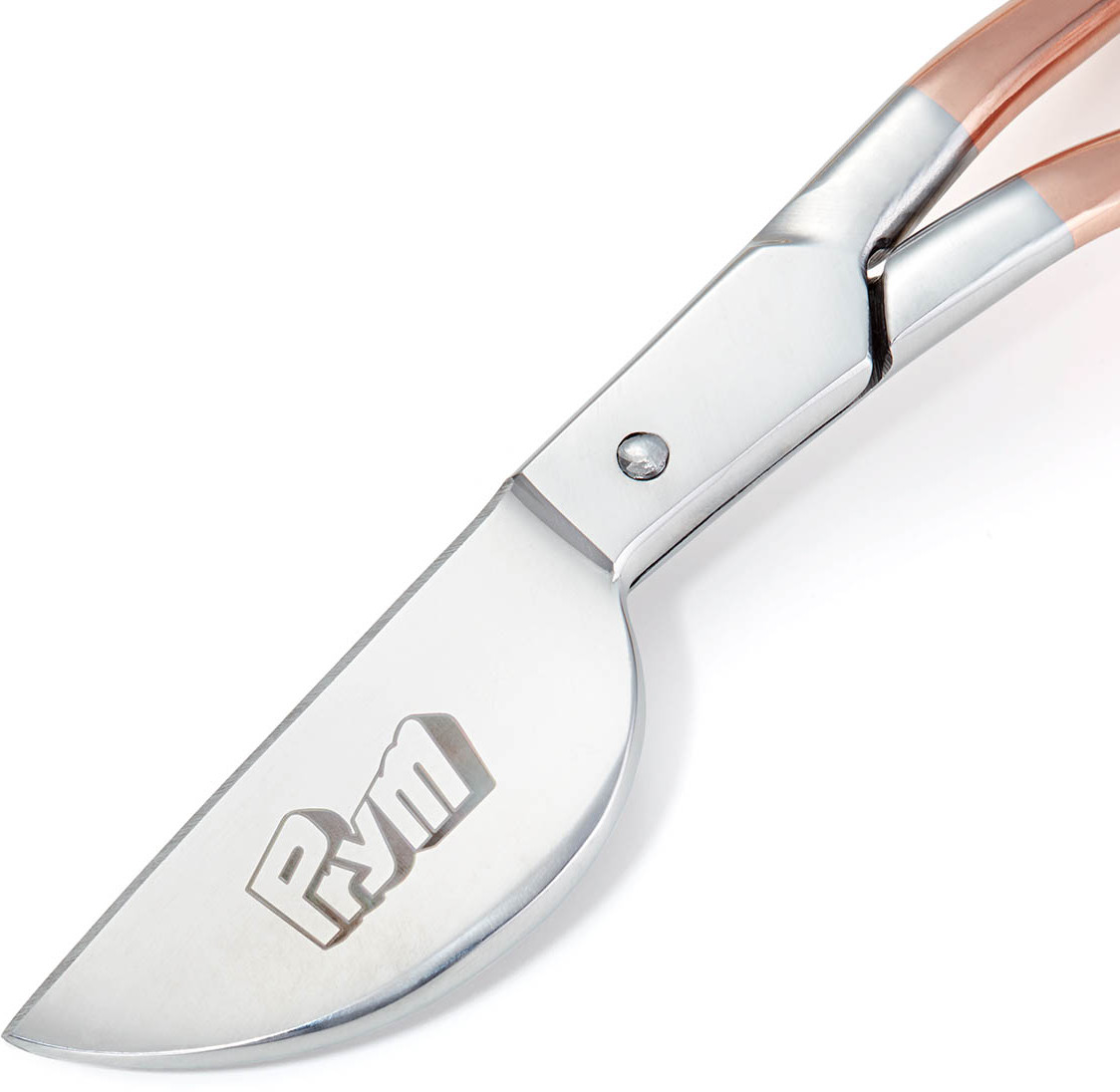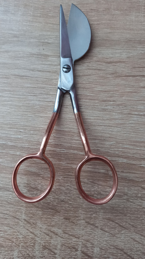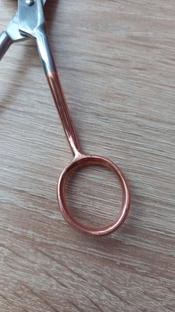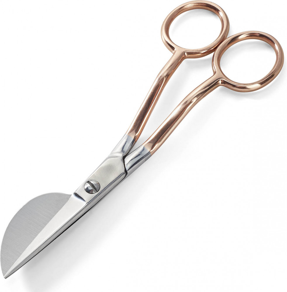 Стальные цельнометаллические ножницы. Благодаря особой форме лезвий подходят для вырезания аппликаций. Ручки покрыты лаком — розовое золото. |