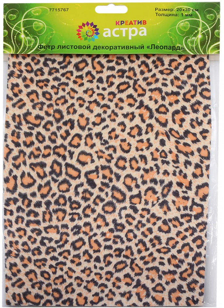 Астра Фетр декоративный «Леопард»В данный момент этот товар отсутствует в продаже. Возможно, у нас найдется аналогичный или похожий товар здесь. Фетр толщиной 1 мм, с рисунком. Материал для шитья игрушек, обложек на паспорт, украшений и т.д. Он практически не мнется, не линяет, износостойкий, гипоаллергенный, лучше держит форму. Фетр из полиэстера обладает легким блеском. Жесткий фетр идеально подойдет для детского творчества: легко кроится и режется. Из жесткого фетра делают развивающие книжки-игрушки, мобили на детские кроватки. Фетром декорируют обложки блокнотов и записных книжек, шьют чехлы для телефонов и сумки. Область применения фетра ограничена только фантазией мастера. |