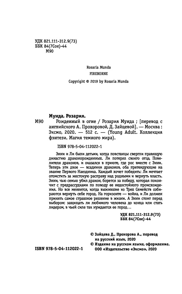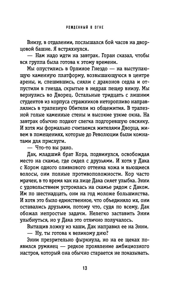 Рожденный в огнеВ данный момент этот товар отсутствует в продаже. Возможно, у нас найдется аналогичный или похожий товар здесь. Серия: Young Adult. Коллекция фэнтези. Магия темного мира Энни и Ли были детьми, когда повстанцы свергли правящую династию драконорождённых. Ли потерял своего отца, Повелителя драконов, и оказался в приюте, где рос вместе с Энни. Теперь эти двое — всадники драконов, оба претендующие на звание Первого Наездника. Каждый хочет победить: Ли мечтает отомстить за жестокую расправу над родными и вернуть власть. Энни, чью семью убил дракон, борется за победу, которая покончит с предрассудками по поводу ее недостойного происхождения. Но все меняется, когда выжившие из Трёх Семейств собираются вернуть себе город. На горизонте — война, и Ли должен принять самое страшное решение в жизни. А Энни стоит перед выбором, защищать ли любимого человека до конца или стать лидером, в чьей силе так нуждается ее город... |