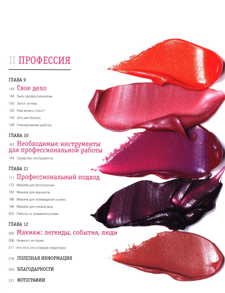 Шикарная книга! И пусть в ней советы по базовому макияжу, она все равно полезна и прекрасна! Очень много интересной и нужной информации, да и оформлена прекрасно. Разве что она скорее для новичков, чем для профи. Но если мейкап не ваша профессия, а уровень мастерства хотелось бы повысить, то эта книга самое то :)