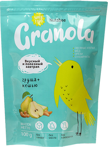 Овсяные хлопья, мед, семена черного кунжута, кешью, груша сушеная (груша сушеная, рисовая мука).