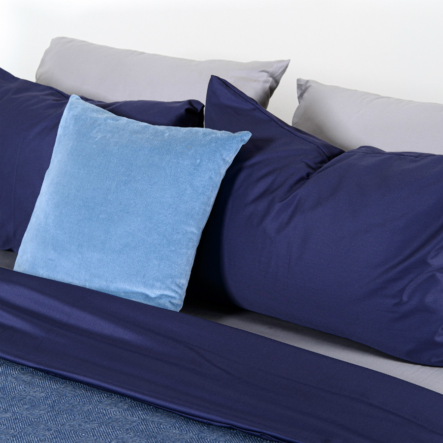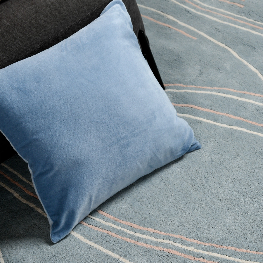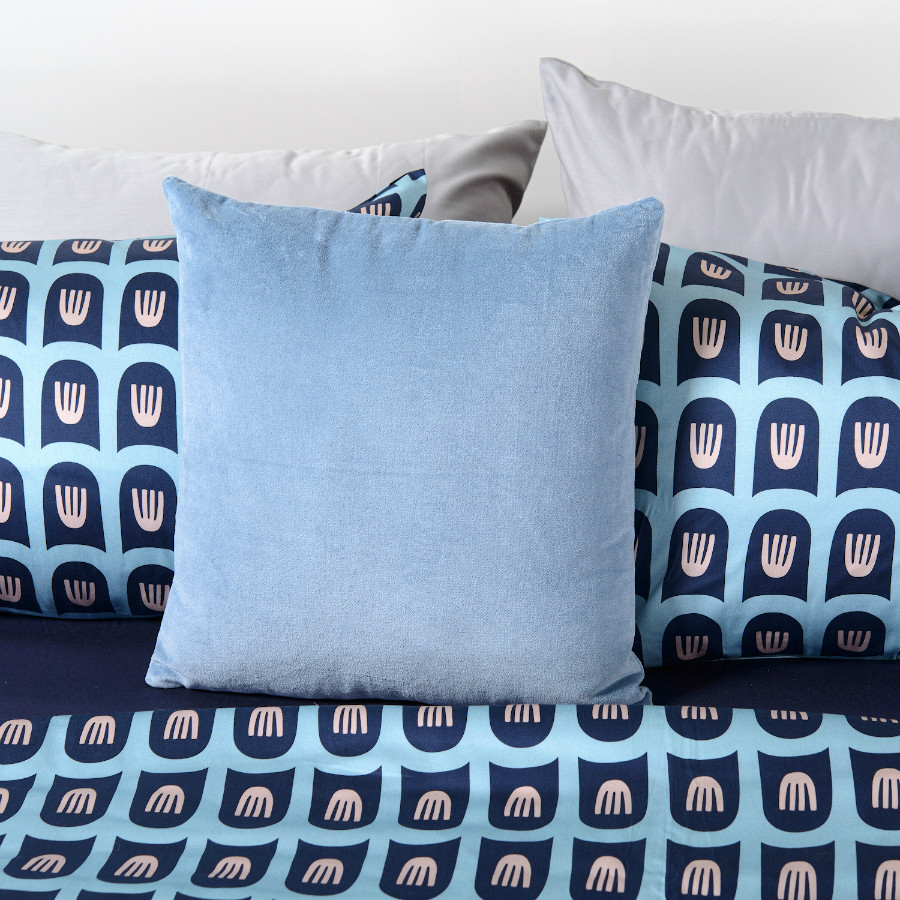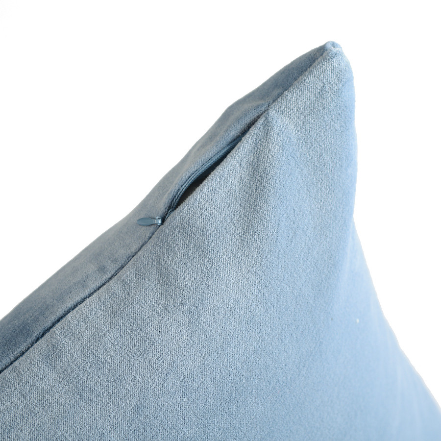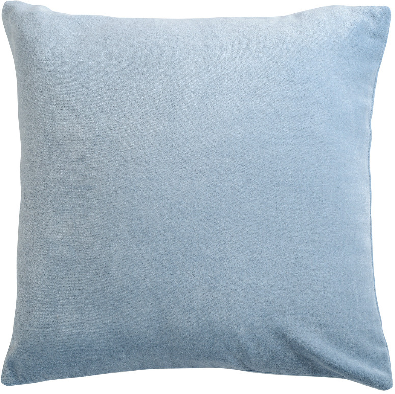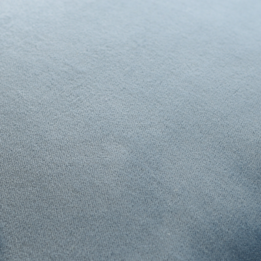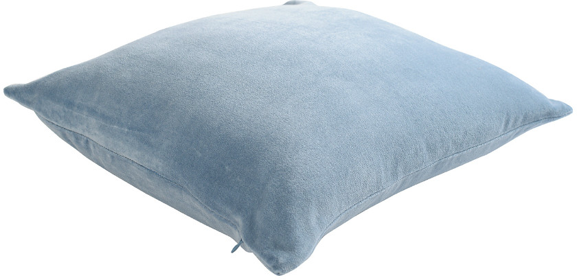 Декоративная подушка светло-синего цвета выполнена из прочного хлопкового бархата. Нежный, приятный на ощупь материал не электризуется, не вызывает аллергию, и за ним легко ухаживать. За счет плотного наполнителя изделие хорошо держит форму.
