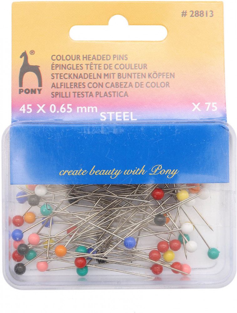 Стальные булавки с цветной головкой-бусиной. Предназначены для наметывания, закалывания гардин, рубашек, блузок. Пластиковый футляр решает проблему хранения. Задача бусины заключается в щадящем обращении с тканью благодаря меньшему трению. Если классическую английскую булавку больше связывают с вспомогательным средством для временного соединения тканей, английские булавки с шариком благодаря этому небольшому визуальному изменению уже скорее приближаются к модному аксессуару. |