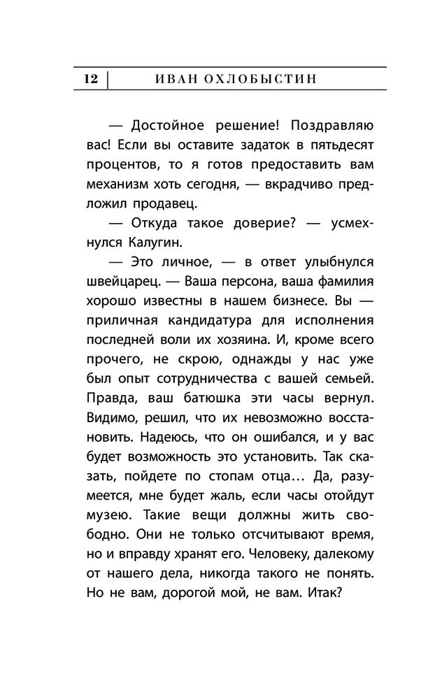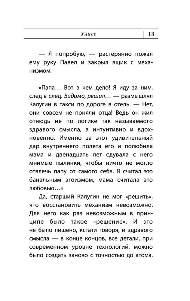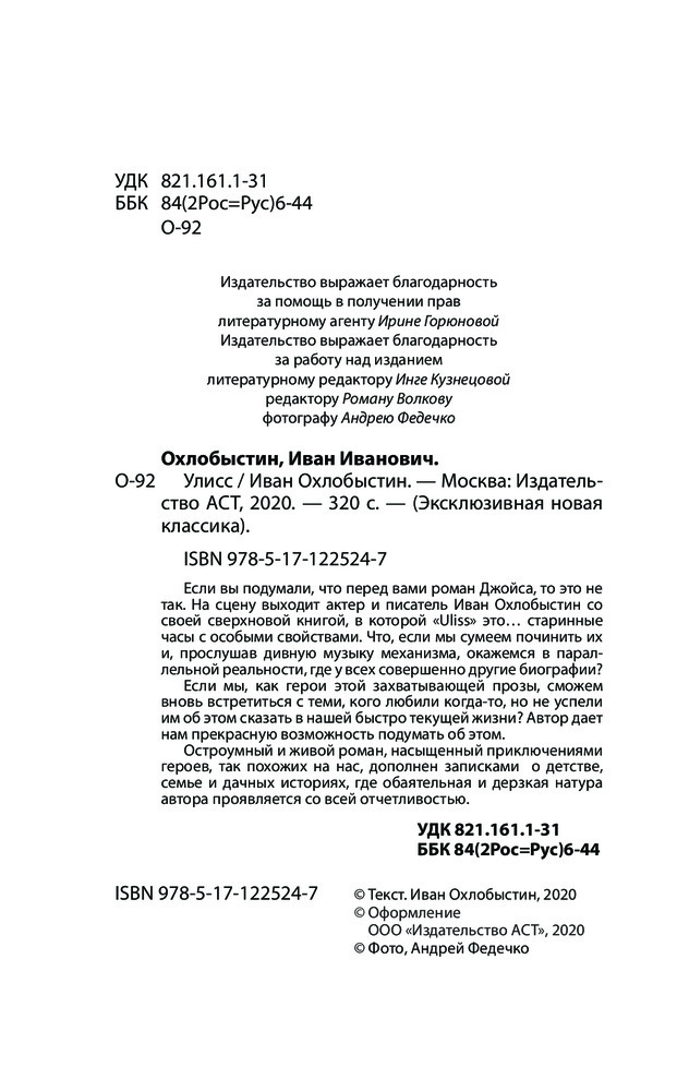 УлиссВ данный момент этот товар отсутствует в продаже. Возможно, у нас найдется аналогичный или похожий товар здесь. Серия: Эксклюзивная новая классика Если вы подумали, что перед вами роман Джойса, то это не так. На сцену выходит актер и писатель Иван Охлобыстин со своей сверхновой книгой, в которой «Uliss» — это... старинные часы с особыми свойствами. Что, если мы сумеем починить их и, прослушав дивную музыку механизма, окажемся в параллельной реальности, где у всех совершенно другие биографии? Если мы, как герои этой захватывающей прозы, сможем вновь встретиться с теми, кого любили когда-то, но не успели им об этом сказать в нашей быстро текущей жизни? Автор дает нам прекрасную возможность подумать об этом. Остроумный и живой роман, насыщенный приключениями героев, так похожих на нас, дополнен записками о детстве, семье и дачных историях, где обаятельная и дерзкая натура автора проявляется со всей отчетливостью. |