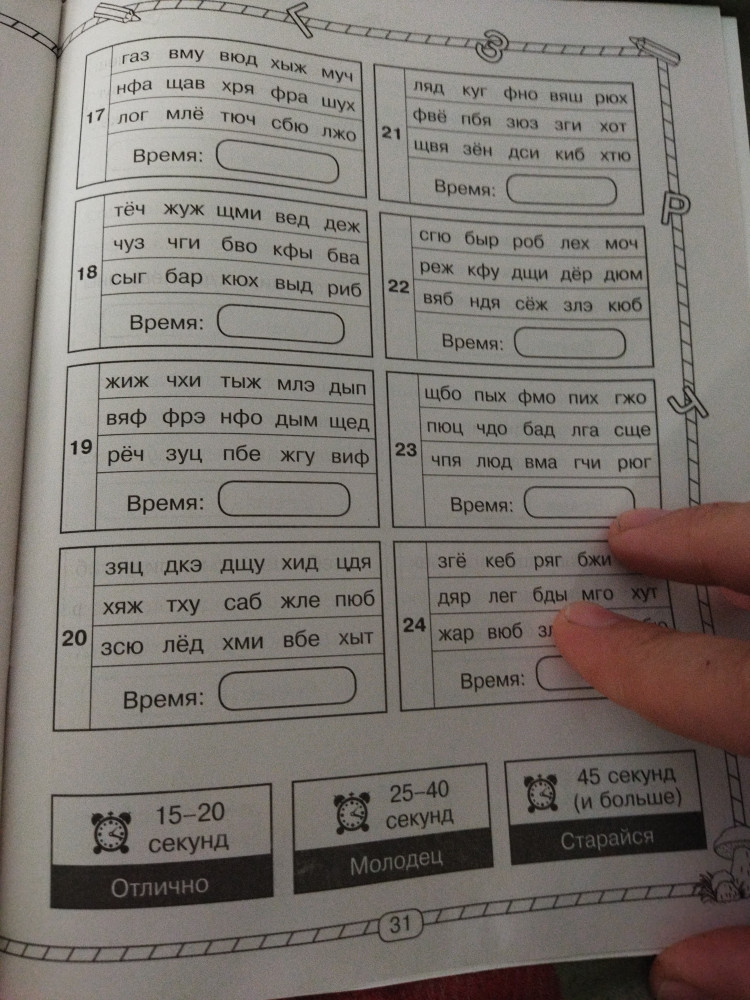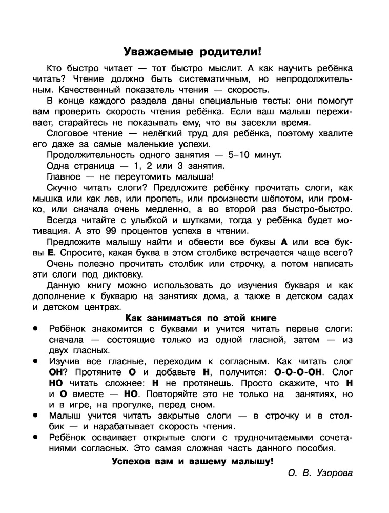 Учимся читать по слогам за 30 занятийВ данный момент этот товар отсутствует в продаже. Возможно, у нас найдется аналогичный или похожий товар здесь. Серия: Научусь за месяц Пособие «Учимся читать по слогам за 30 занятий» известных педагогов-практиков О. В. Узоровой и Е. А. Нефёдовой поможет ребёнку автоматизировать навык слогового чтения. Занимаясь по этой книге, ребёнок научится читать открытые и закрытые слоги из одной, двух, трёх букв, развивая речевые навыки и постепенно увеличивая скорость чтения. Для начального образования. |
