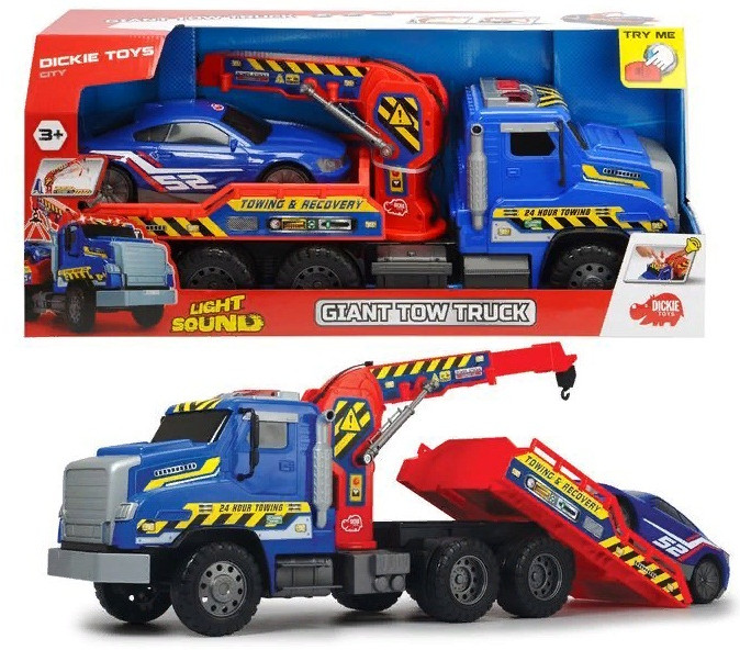 В данный момент этот товар отсутствует в продаже. Возможно, у нас найдется аналогичный или похожий товар здесь. Эвакуатор «Гигант» реалистичная игрушка от компании «Dickie Toys», которая позволит ребенку представить себя сотрудником специальной службы, помогающей машинам, попавшим в беду на трассе. В комплекте предусмотрен легковой автомобиль, который можно поднять поворотной стрелой с крюком на платформу эвакуатора для транспортировки.