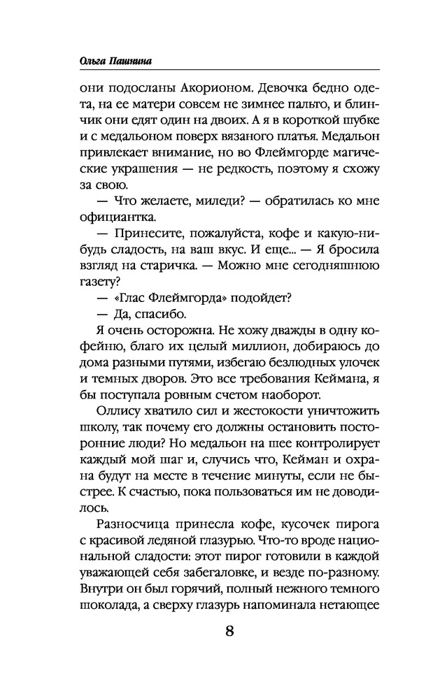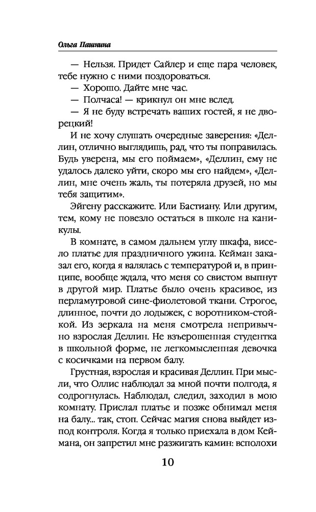| Пашнина Ольга Олеговна родилась в Челябинске. Имеет степень бакалавра гидравлической вакуумной и компрессорной техники, обучалась в магистратуре по этому же направлению. Фантастику и фэнтези пишет с пятнадцати лет, хотя творческий путь начался намного раньше. За годы творчества написано множество рассказов, романов в жанре романтического фэнтези, издано несколько книг. Помимо фэнтези экспериментирует в таких жанрах как драма, триллер, фантастика, стимпанк, клокпанк. Профессионально занимается... |
