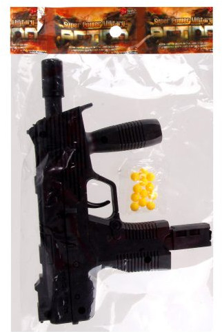Наша игрушка Автомат механическийВ данный момент этот товар отсутствует в продаже. Возможно, у нас найдется аналогичный или похожий товар здесь. Механический автомат в наборе с пластиковыми пульками. Пули устанавливаются в специальный магазин, расположенный в нижней части игрушки, выстрел осуществляется нажатием на курок.  |