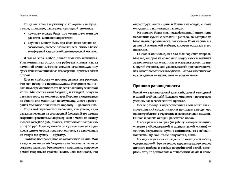 «Книгу «Любить. Считать» должна прочитать каждая девушка. Это то, чему не учат в школе и что редко обсуждают на форумах, но с чем сталкивается большинство из нас. При этом ее автор не пытается бездушно все рационализировать — всё, о чем тут говорится, применимо в реальной жизни. А еще эта книга легко написана.».