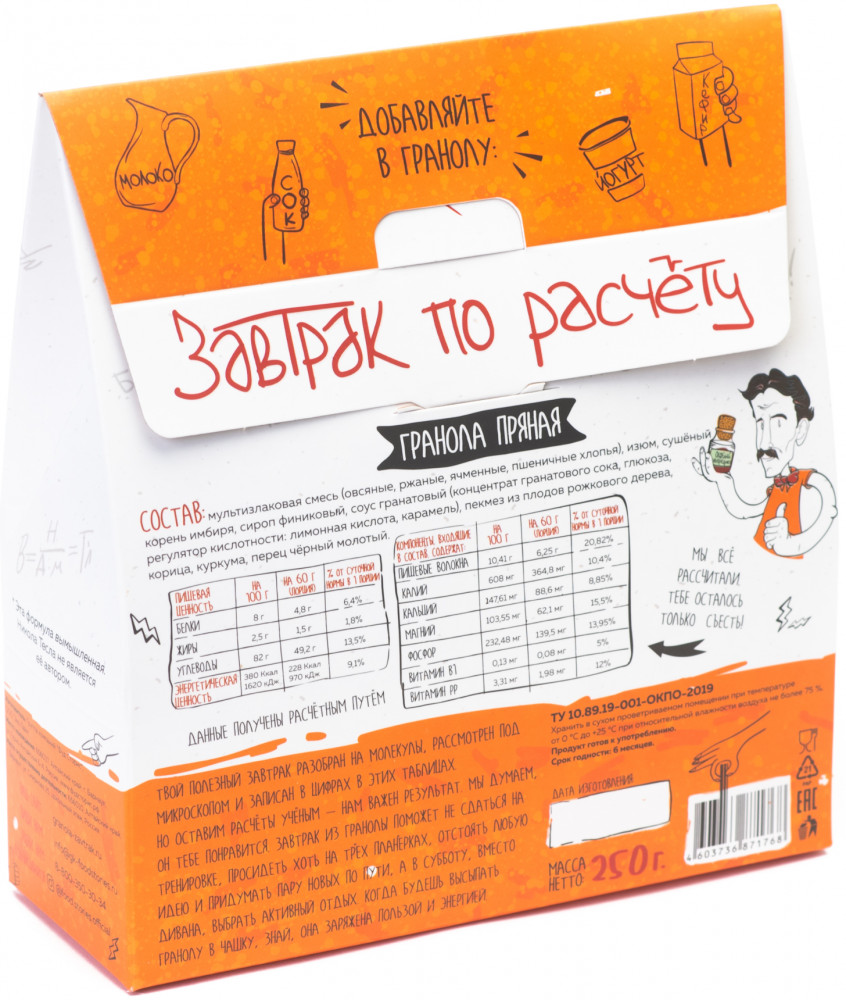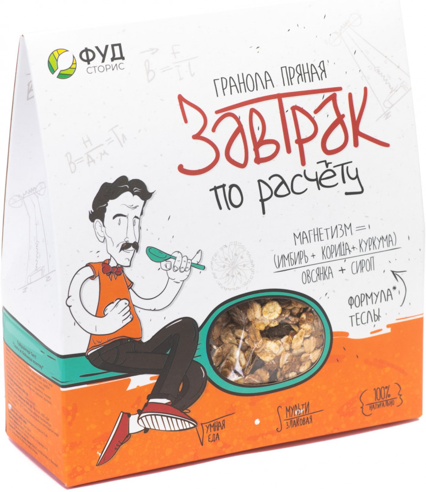 Вкус этой гранолы поразит вас, как электрический заряд. Не зря на ней нарисован Никола Тесла! Пряные и острые нотки сделают этот завтрак вашим любимым лакомством. Осторожно! Теперь вы находитесь во власти магнитного поля гранолы!