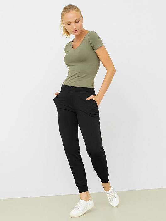 Большемерят на 1 размер. Пояс-резинка, не помешали бы шнурки. Очень приятная и мягкая ткань, затмевает все недостатки.