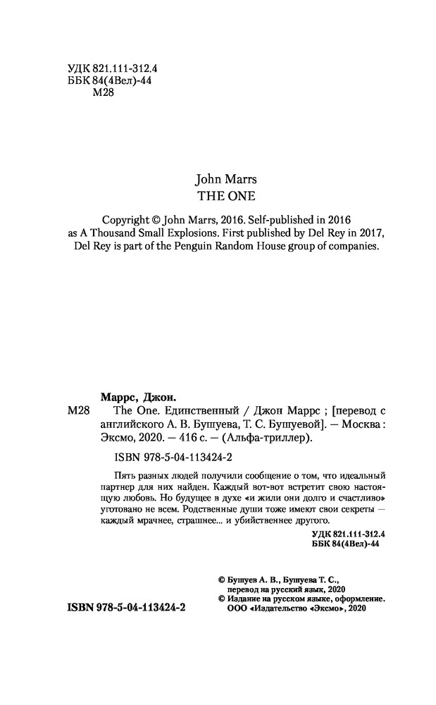 💳 Оплатить за товар можно при получении 🇰🇿 Есть бесплатная доставка по Казахстану 🎁 Копите бонусы с каждой покупки Серия: Альфа-триллер Взгляните на своего партнера и скажите честно: он (или она) — действительно тот самый Единственный? Вы в этом уверены? |