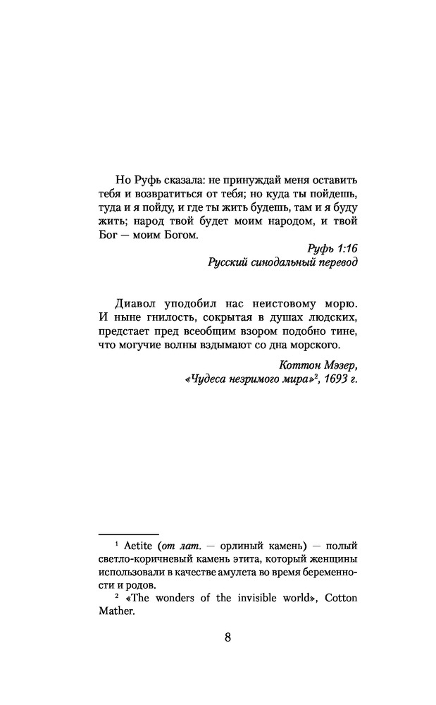 История захватывает с первых страниц и держит в напряжении до последних. Читается легко и быстро. Содержит информацию о реальных исследованиях и о некоторых реальных участниках событий времен охоты на ведьм в Северной Америке. Главные персонажи неплохо прорисованы и вызывают сочувствие читателя. Книга красиво оформлена: нежно-голубой форзац с цветочным узором очень здорово смотрится.