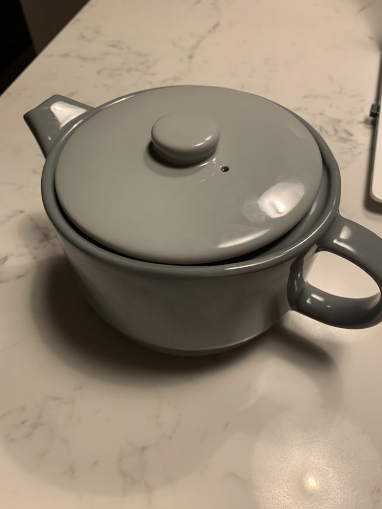 Чайник без сита металлического. Это я знала, но вдруг вы не учли. Когда наливаю из полного чайника, то чай льётся из крышки в том числе. Хотя не наклоняю так сильно. И худшее: крыша неровно сидит на чайнике (видно на фото). Как качеля крышка туда-сюда елозит. В общем, эпик фейл. Кроме интересного дизайна ничего не. И да, очень тяжелый.