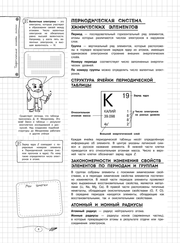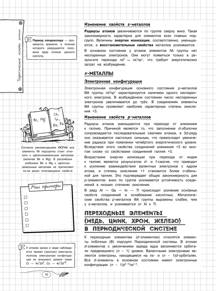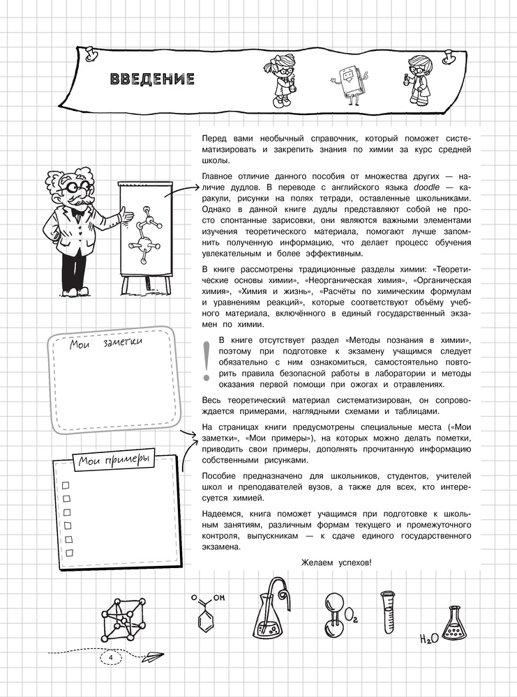 Заказала эту книгу сыну, как дополнительную к школьной программе. Понравилась мне и ребенку (сама много что вспомнила и узнала новое). Здесь собрана основная информация в виде правил и небольших примеров, интересные факты, много весёлых рисунков, ребенок легко воспринимает всю информацию, а на последней странице расписаны соли и кислоты- за это прям отдельное спасибо. Сыну в школе как-то тяжело было именно с химией и в нашей ситуации эта книга очень помогла. За несколько дней восстановили все пробелы в знаниях.