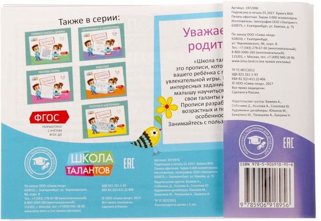 Серия: Мои первые прописи Буква-Ленд Серия «Мои первые прописи» познакомит ребёнка с письмом в форме увлекательной игры. Все элементы и картинки прорисованы толстым контуром, их удобно обводить и раскрашивать. |