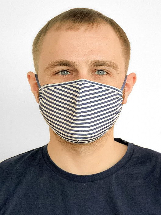 Маска больше синеватого оттенка, чем серая. Сшита аккуратно, ткань не очень плотная, резинки удобные. Если вы взрослый человек, то надо брать только L, а мы взяли S, будем перезаказывать.