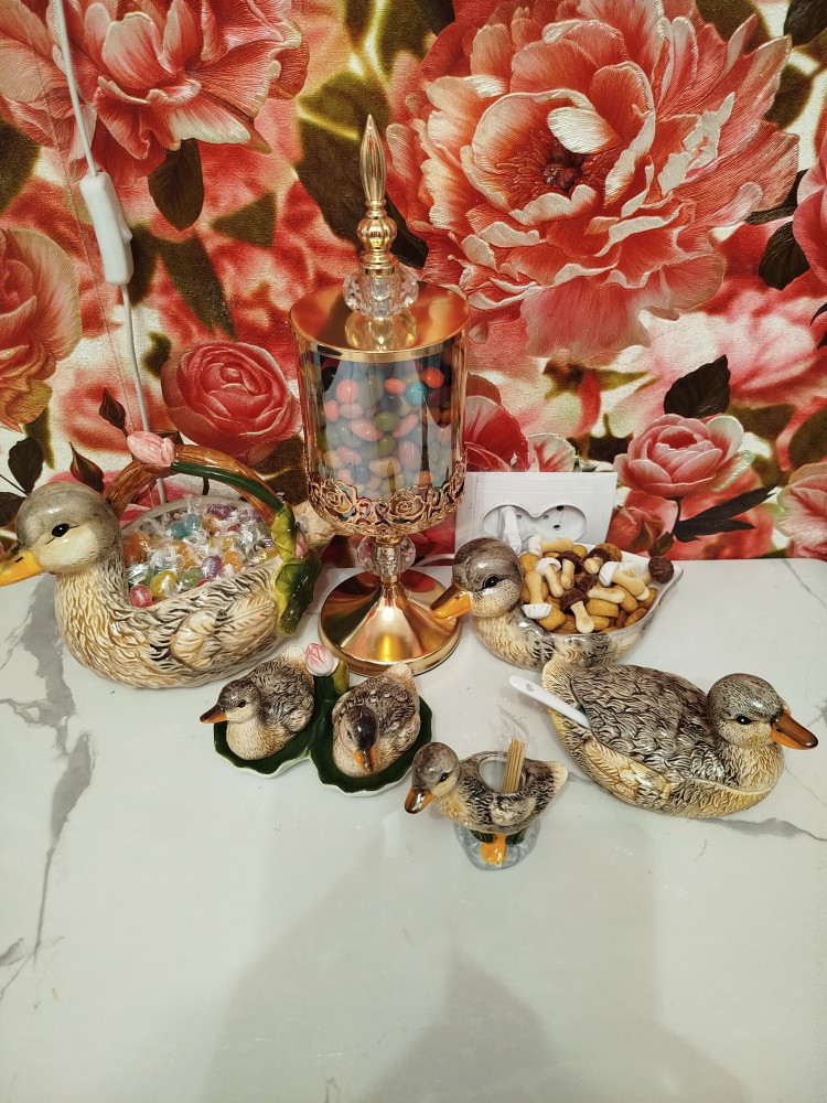 Красивые уточки, добрала до набора. Пока не пользовалась, вещицы чисто интерьерные.