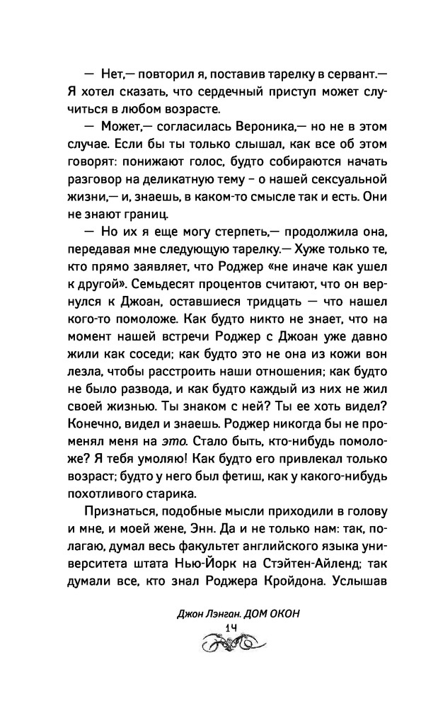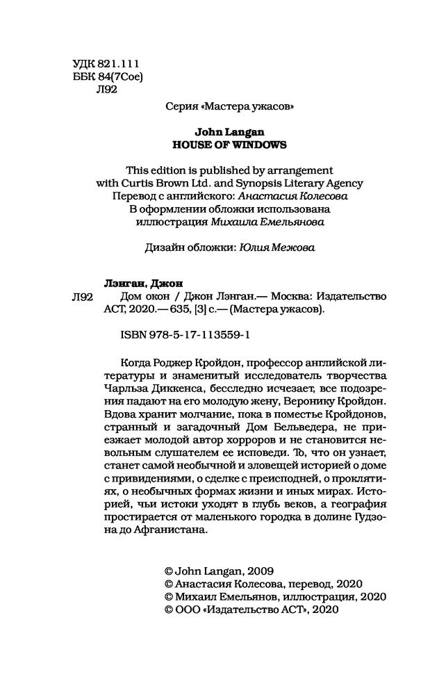 Дом оконВ данный момент этот товар отсутствует в продаже. Возможно, у нас найдется аналогичный или похожий товар здесь. Серия: Мастера ужасов Когда Роджер Кройдон, профессор английской литературы и знаменитый исследователь творчества Чарльза Диккенса, бесследно исчезает, все подозрения падают на его молодую жену, Веронику Кройдон. Вдова хранит молчание, пока в поместье Кройдонов, странный и загадочный Дом Бельведера, не приезжает молодой автор хорроров и не становится невольным слушателем ее исповеди. То, что он узнает, станет самой необычной и зловещей историей о доме с привидениями, о сделке с преисподней, о проклятиях, о необычных формах жизни и иных мирах. Историей, чьи истоки уходят в глубь веков, а география простирается от маленького городка в долине Гудзона до Афганистана. |