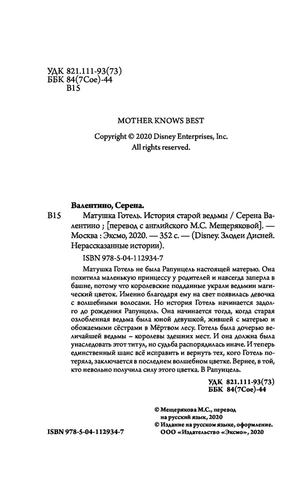 💳 Оплатить за товар можно при получении 🇰🇿 Есть бесплатная доставка по Казахстану 🎁 Копите бонусы с каждой покупки Серия: Детск. Disney. Злодеи Дисней. Нерассказанные истории Матушка Готель не была Рапунцель настоящей матерью. Она похитила маленькую принцессу у родителей и навсегда заперла в башне, потому что королевские подданные украли ведьмин магический цветок. Именно благодаря ему на свет появилась девочка с волшебными волосами. Но история Готель начинается задолго до рождения Рапунцель. Она начинается тогда, когда старая озлобленная ведьма была юной девушкой, жившей с матерью и обожаемыми сёстрами в Мёртвом лесу. Готель была дочерью величайшей ведьмы — королевы здешних мест. И она должна была унаследовать этот титул, но судьба распорядилась иначе. И теперь единственный шанс всё исправить и вернуть тех, кого Готель потеряла, заключается в последнем волшебном цветке. Вернее в той, кто невольно получила силу этого цветка. В Рапунцель. |