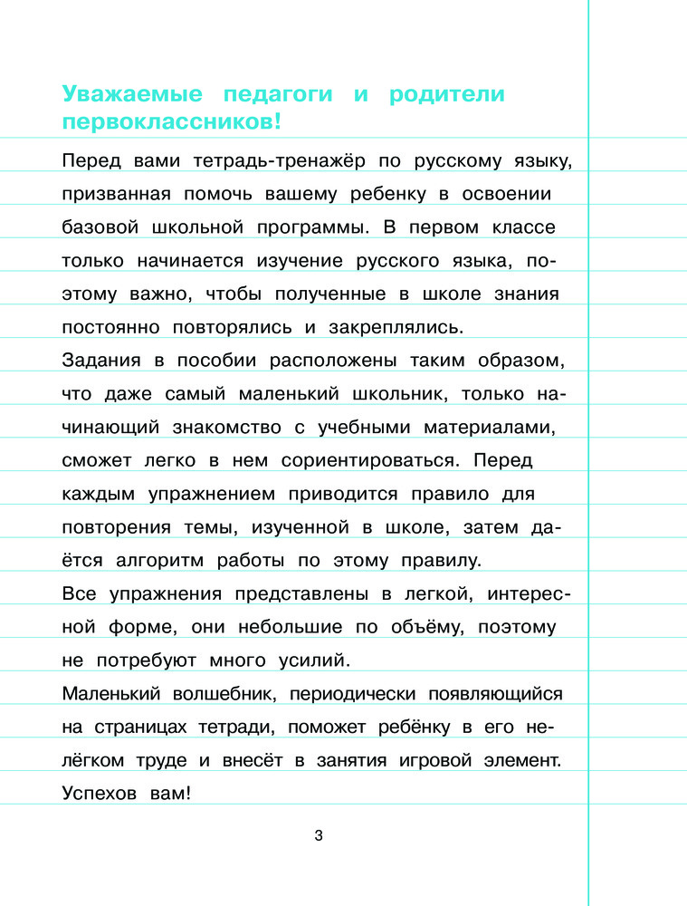 Серия: Тетрадь-тренажер для начальной школы (обложка) Основная задача пособия, соответствующего ФГОС, закрепить полученные в школе знания по основным темам русского языка: текст и предложение; значение слова; деление слов на слоги; ударение; перенос; гласные и согласные звуки и буквы; буквосочетания жи-ши, ча-ща, чу-щу, чк-чн-чт; заглавная буква в именах собственных. Перед каждым упражнением дается правило и алгоритм его выполнения. Кроме орфографии, учащие повторят лексику, морфологию, синтаксис и пунктуацию. Пособие структурировано максимально удобно и поможет отработать навыки и умения школьникам, занимающимся по любой из ныне действующих программ, а родителям организовать самостоятельную работу учащихся дома. Предназначено для учеников 1 класса, их родителей и учителей начальных классов для повышения эффективности учебного процесса. |