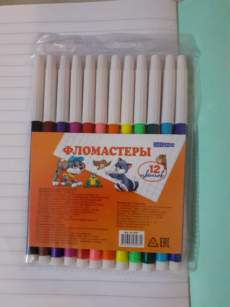 Фломастеры не очень хорошего качества. Из 12 цветов 2 оказались засохшими, пришлось "реанимировать" с помощью спирта. И хотя сделаны они были в сентябре 2019 г., их срок годности составляет 2 года. Произведены в Китае. В общем-то, качество соответствует цене. Если есть возможность, лучше брать фломастеры подороже, более приемлемого качества.