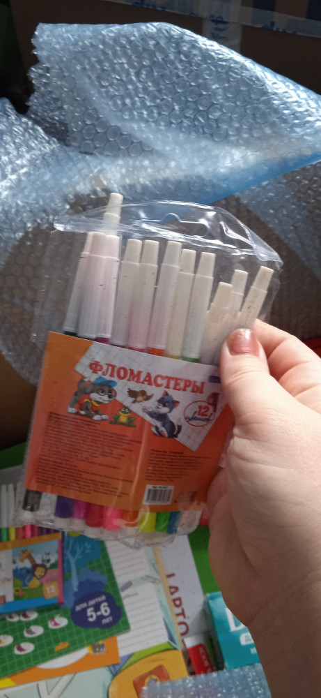 один фломастер сломался пополам при рисовании, очень хрупкие. упаковка была разорвана при открытии посылки