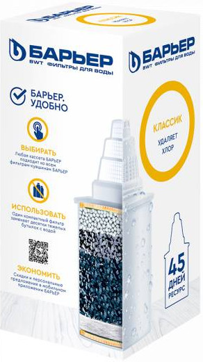 Барьер Кассета фильтрующая сменная «Классик Хард»В данный момент этот товар отсутствует в продаже. Возможно, у нас найдется аналогичный или похожий товар здесь. Кассета «Классик» помогает удалить из водопроводной воды различные примеси механического происхождения, а также хлор, железо в растворенном виде, тяжелые металлы, посторонние запахи и привкусы. Одна кассета для фильтра способна очистить до 200 литров воды. |
