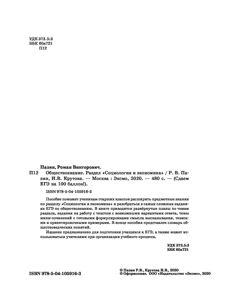 Обществознание. Раздел «Социология и экономика»Ирина Владимировна Крутова, Роман Викторович Пазин -20%