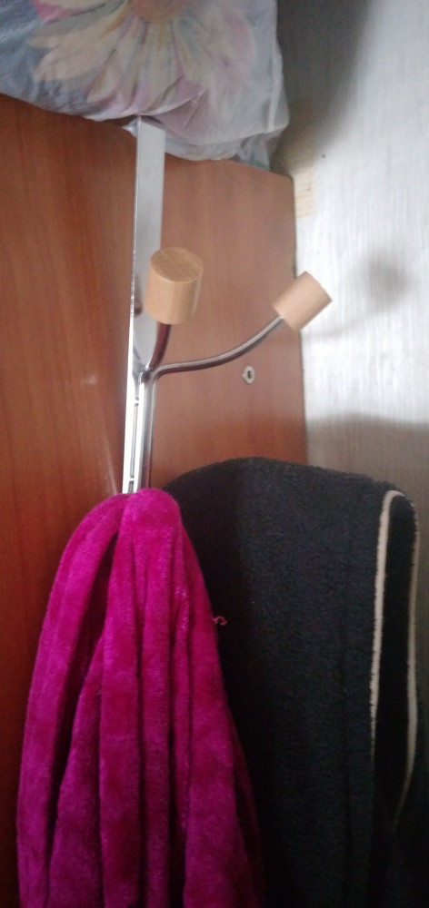 Хорошо держится на двери, полотенце банное не соскальзывает, покупкой довольна.